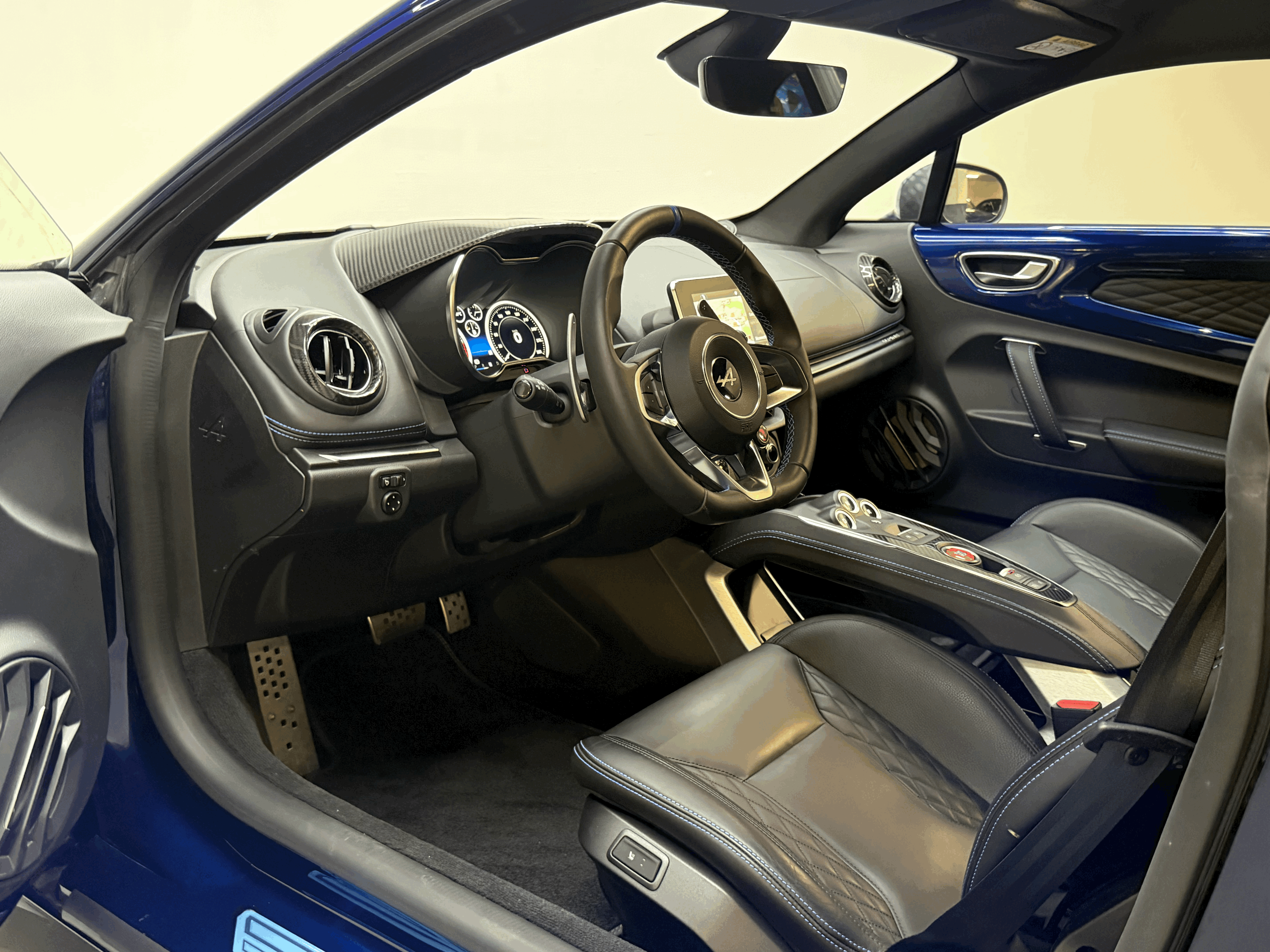 - sièges confort en cuir noirs avec surpiqures bleues, réglables et chauffants - Jantes fuchs gris anthracites - Échappement sport Actif - Freins haute performance 320mm étriers bleus - Système audio Focal Premium - Aide au stationnement avant et arrière avec camera de recul - Repose pieds en alu brossé - Logos Alpine sur les ailes avant - Pack rangement